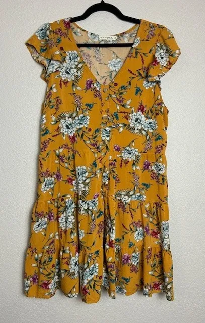 Measurements: • PTP across chest: 20 in • Length: 35 in • Waist: 37 in Style: Sundress, Trapeze & Swing, Shift Dress Length: Knee Length Department: Women Sleeve Length: Short Sleeve Pattern: Floral Occasion: Casual Material: Rayon Fabric Type: Rayon Theme: Bohemian Neckline: V-Neck Season: Summer, Spring Sleeve Type: Flutter Sleeve Closure: Pullover Accents: Button, Layered Condition: Good pre-owned condition that has some wear consistent with pre-owned clothing. Still very cute and looks great. Keywords: floral print, tiered dress, ruffle hem, v-neck, short sleeve, rayon, boho, summertime, casual, day dress, plus size, women's fashion, lightweight, cottage core, sunshine, sun dress, coquette, feminine, flirty, romantic, summer love