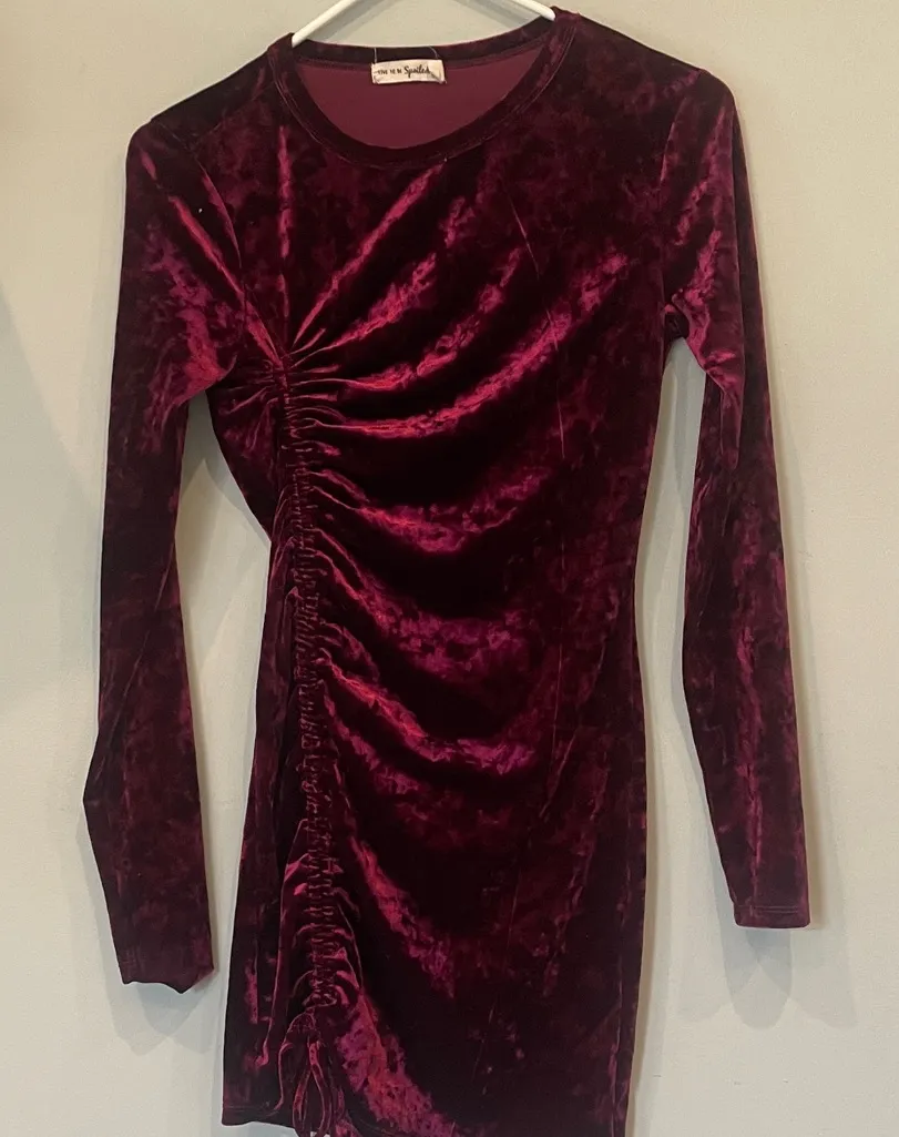 Velvet Ruched Long Sleeve Dress in Deep Burgundy small Red - $19 - From Lisa