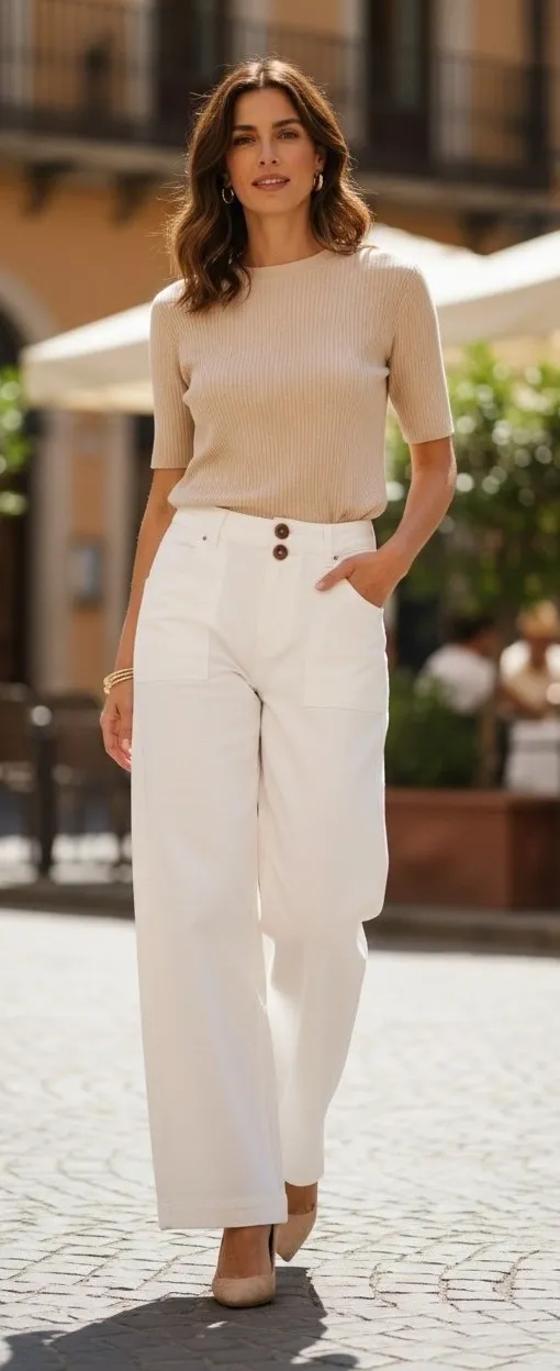 Discover effortless chic with these Liverpool Los Angeles white wide-leg cropped pants. Designed with a flattering high rise and a contemporary wide leg silhouette, these trousers offer a sophisticated yet relaxed feel. The utility-inspired details, like the ample front pockets and double button closure, add a touch of practical flair. Imagine yourself strolling through a sun-drenched market or enjoying a leisurely brunch, feeling both comfortable and stylish. These versatile pants are perfect for elevating your everyday wardrobe or for a chic vacation ensemble. Measurements: • Waist: 18.5 in • Inseam: 30 in • Rise: 11 in • Leg Opening: 10.5 in Style: Cargo Department: Women Material: Cotton Leg Style: Wide-Leg Type: Pants Fabric Type: Denim Features: Pockets, Stretch, Wrinkle Resistant, Easy Care Closure: Zip, Button Pattern: Solid Accents: Button, Zipper Occasion: Casual, Workwear Inseam: 32 in Waist Size: 32 in Fit: Relaxed Rise: Mid (8.5-10.5 in) Keywords: Liverpool, white pants, wide leg, cropped, utility, high rise, button front, casual, summer, resort, travel, fashion, chic