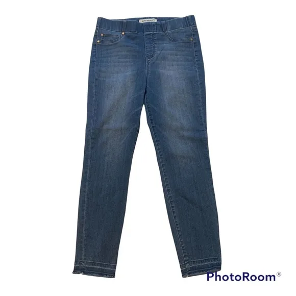 Liverpool High Waisted Skinny Cropped Ankle Pull On Jeggings. Faux front pockets. Raw fringe hem. Size: 6/28 Approx measurements: Waist: 14.5” flat lay without stretch Rise: 10” Inseam: 25.5” Pre-owned, good condition.