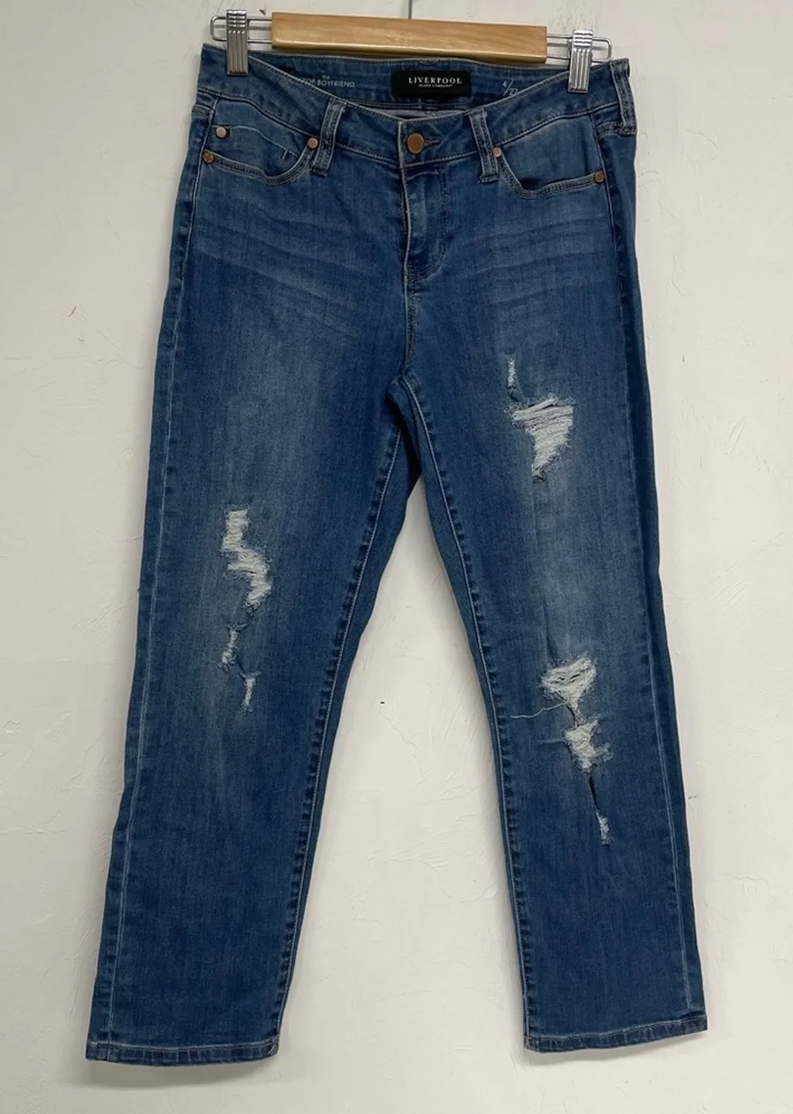 Liverpool Blue Medium Wash Distressed Boyfriend Crop Jeans Womens 4 Blue Ankle - $30 - From Lisa