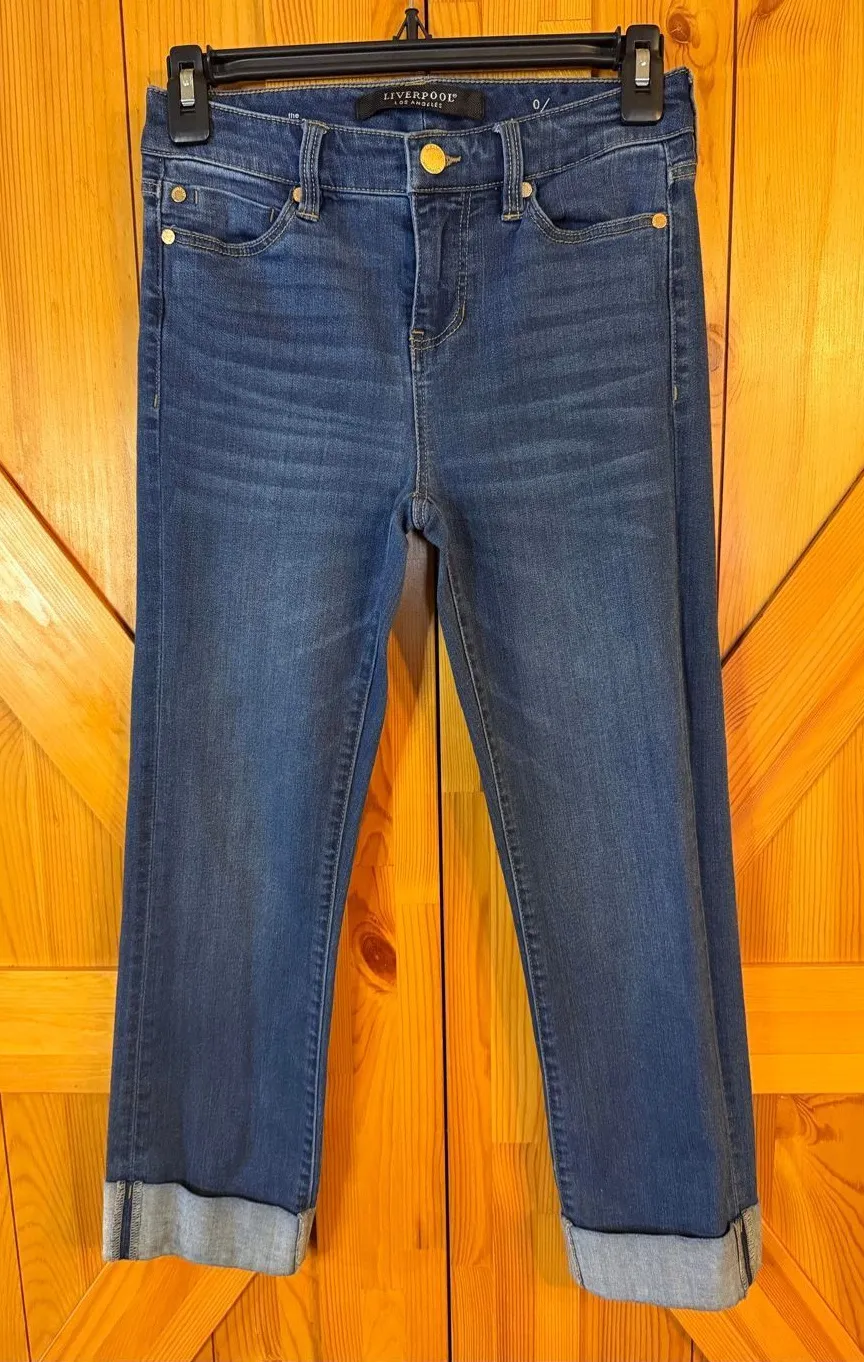 Liverpool Women’s The Crop Cuffed Distressed Medium Wash Jeans Size 0/25 (6547) Blue - $35 - From Jessica