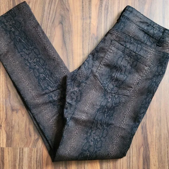 Absolutely Fierce! You can pair these with literally any color top. A exquisite style with a statement reptile print. Well fitting, these will make you look long and lean especiallywhen paired with heels. Size 4 14½" waist 9" rise 18" hips 31" inseam 68% cotton 30% polyester 2% spandex
