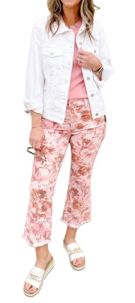 Liverpool Los Angeles Hannah Crop Flare with Fray Hem in Pink Floral print 10/30 - $24 - From Hayley