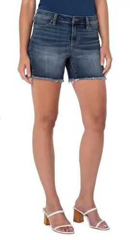 Excellent condition- no stains or flaws Retails-$68 Mid-rise mineral washed denim short has the perfect amount of stretch with an incredibly soft hand feel and slit hem styling. Measurements approximate when laid flat: Waist- 35 inches/ 17 1/2 inches side to side Inseam- 4 1/2 inches Rise- 11 inches Leg opening- 23 inches Split hem Frayed hem Super stretchy Set-in waistband with belt loops 5-Pocket styling details Zip-fly and single logo button closure 95.6% Cotton, 3.9% Polyester, 0.5% Spandex
