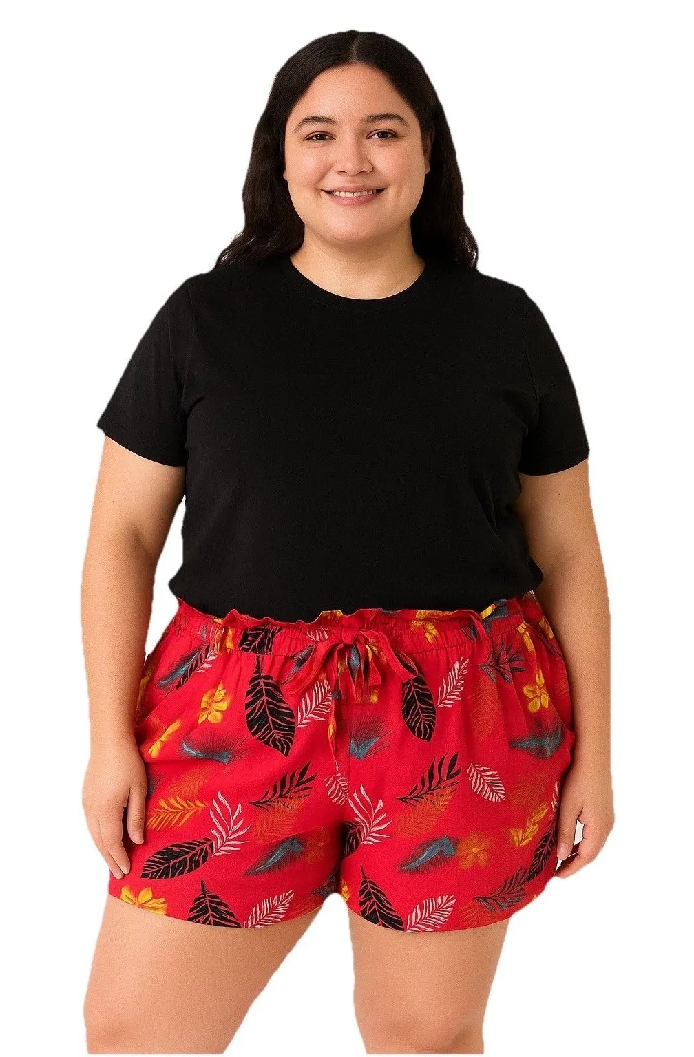 Liz Banks Red Tropical Print Cotton Shorts Size 3x Paper Bag Waist - $11 - From Rachelle L