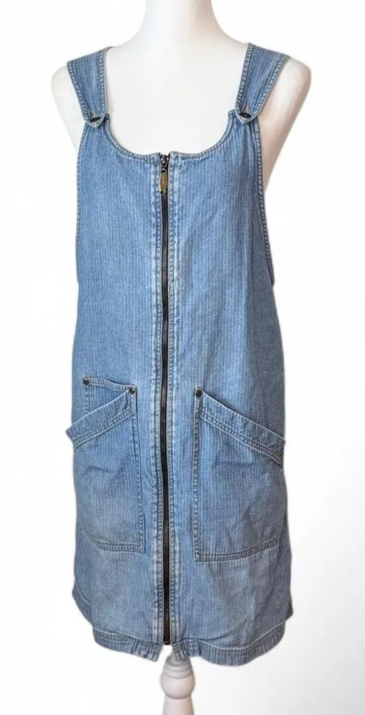 90s Denim Dress Striped overall dress Small 18” pit to pit 35” long Good condition