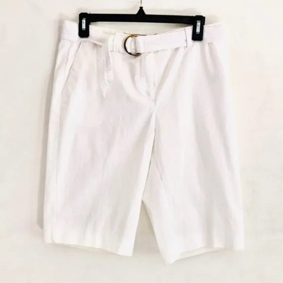 White Audra bermuda shorts by Liz Claiborne. Size 8. Belted with a double d-link buckle. Front sla... Show more