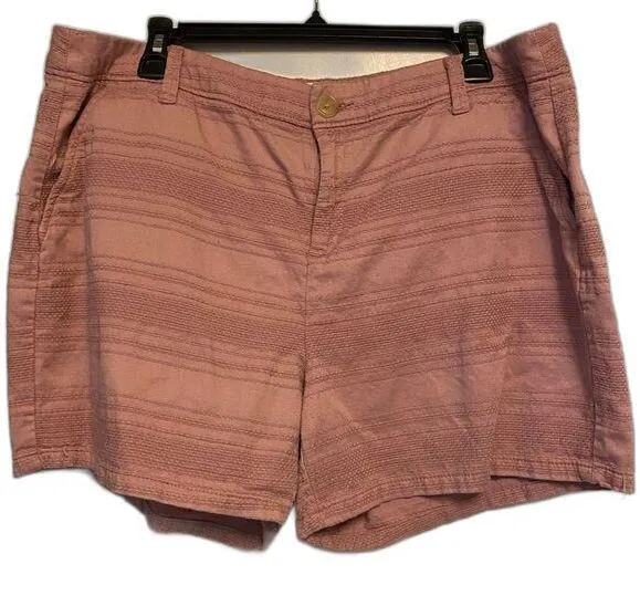 Cute shorts side and back pockets short zip and button closure horizontal sewn lines decor fair cond... Show more