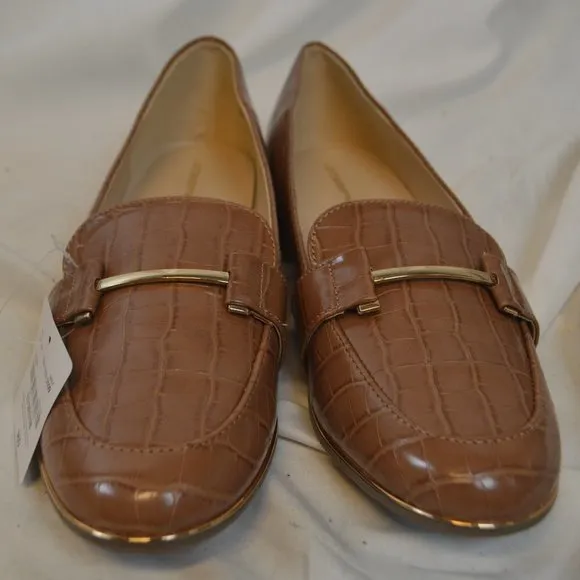 Liz Claiborne Brown Reptile Print Loafers With Gold Bit Size: 9.5 M Brand New In Box 1/2 inch shoe... Show more