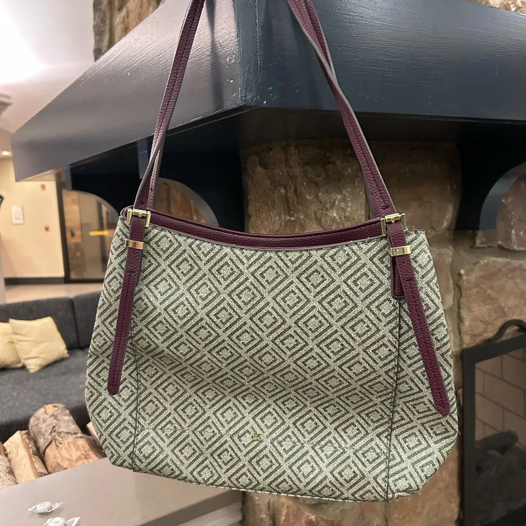 Elevate your style with this chic shoulder bag featuring a striking geometric pattern and rich burgu... Show more