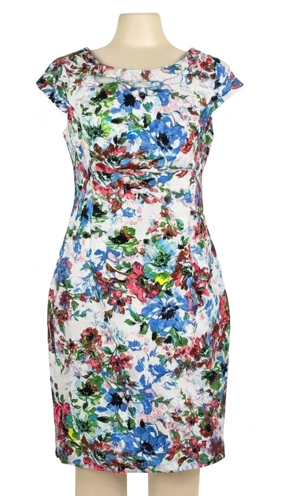 Liz Claiborne Dress Womens 10 White Blue Floral Flower Garden Party Cottagecore Women's Size 10 Sh... Show more