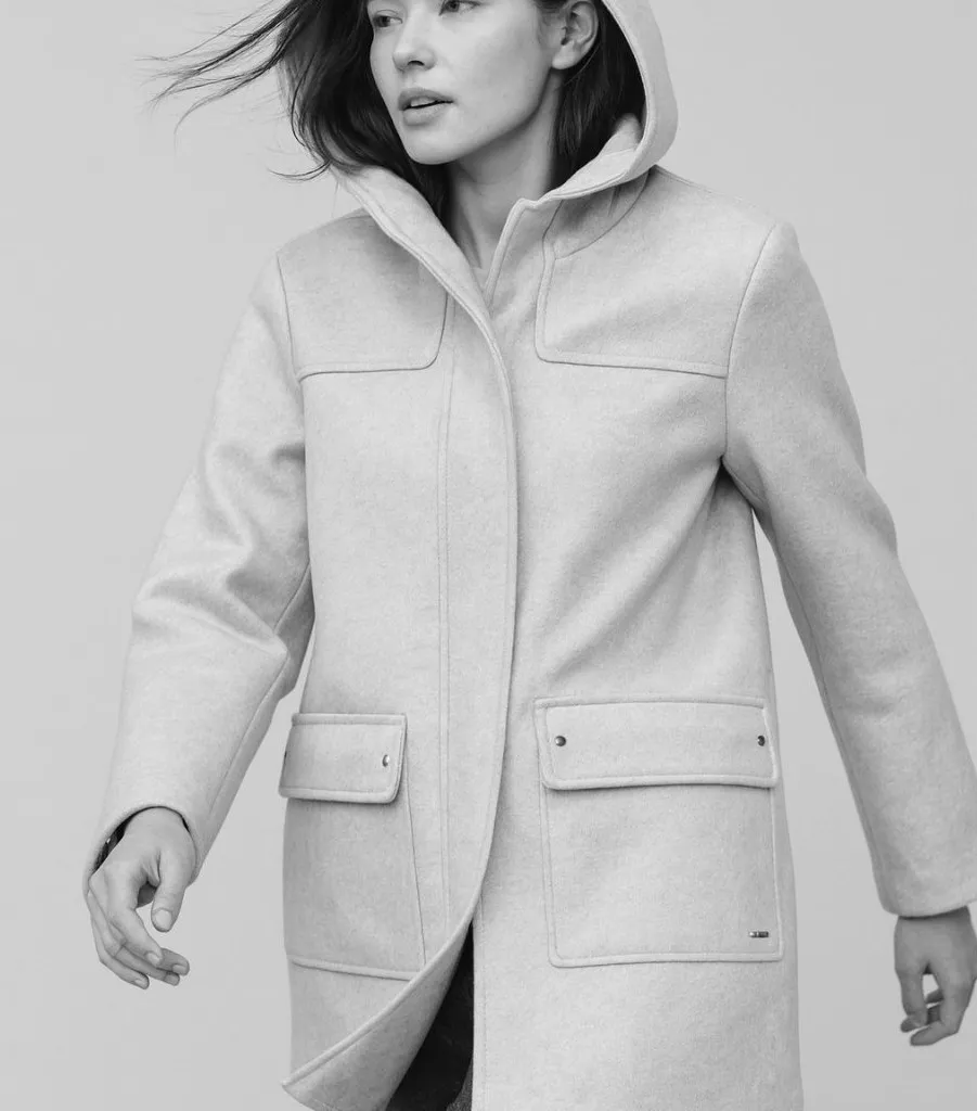 A sophisticated light Ivory wool blend coat designed can be worn with faux fur trim. This coat can b... Show more