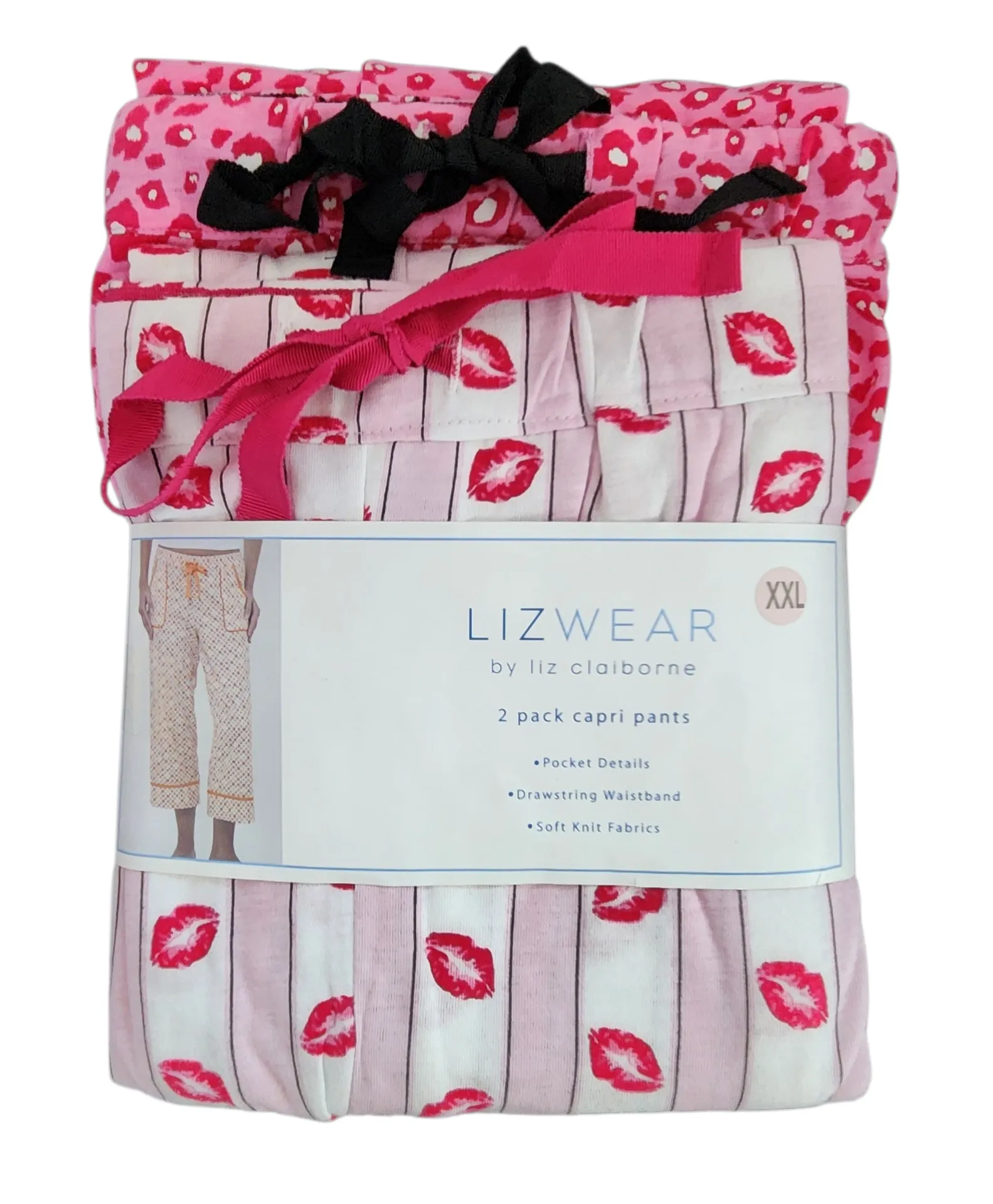 Lizwear by Liz Claiborne capri pj pants in a 2-pack. Features a leopard print pattern and a kiss pat... Show more