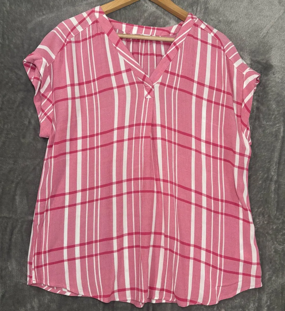 Folded cap sleeve. Loose fit. Front center pleat See photos for clothing measurements and condition... Show more