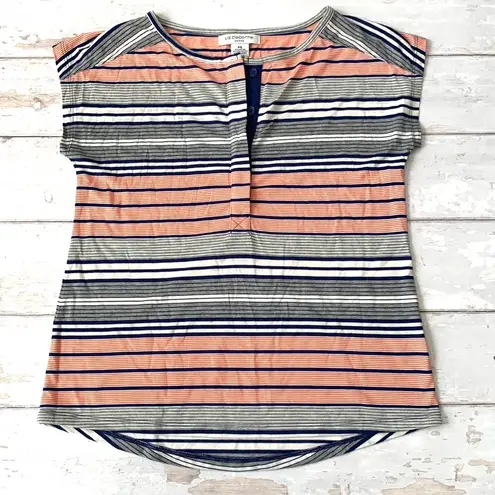 Liz Claiborne S/M Women’s Striped Henley Tee Navy Blue Orange Petite Size Small - $10 - From Lark