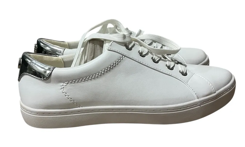 The product is a pair of Liz Claiborne Size 8 M white sneakers shoes with faux leather accents in si... Show more