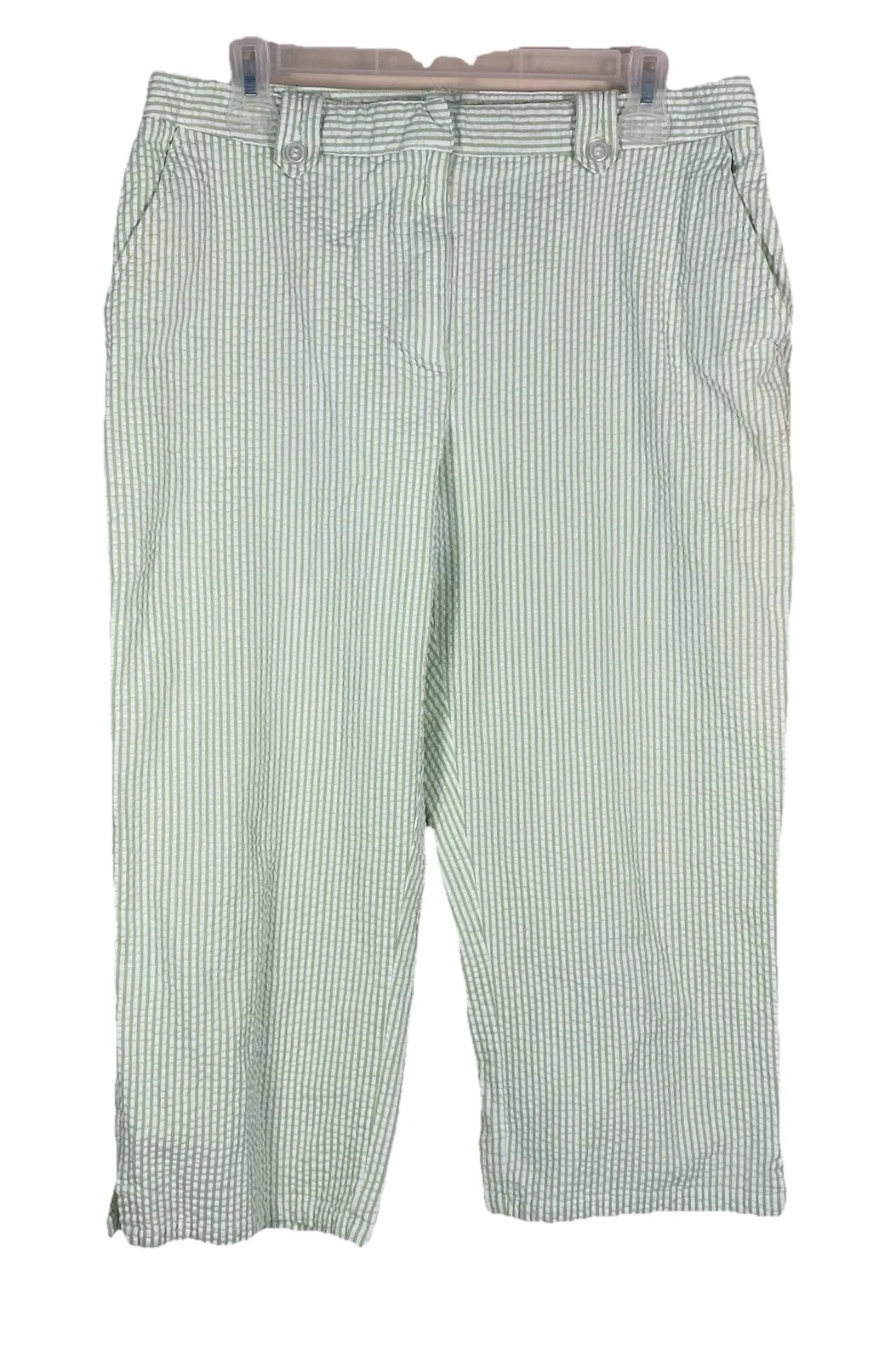 Villager by Liz Claiborne Seersucker Stretch Capri Pants Size 14 Color: Green White Stripe Excelle... Show more