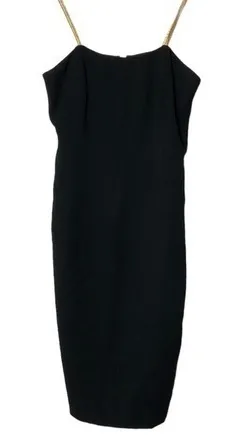 Vintage Liz Claiborne little black dress gold metallic Spaghetti strap 10 Armpit to armpit 17” flat.... Show more