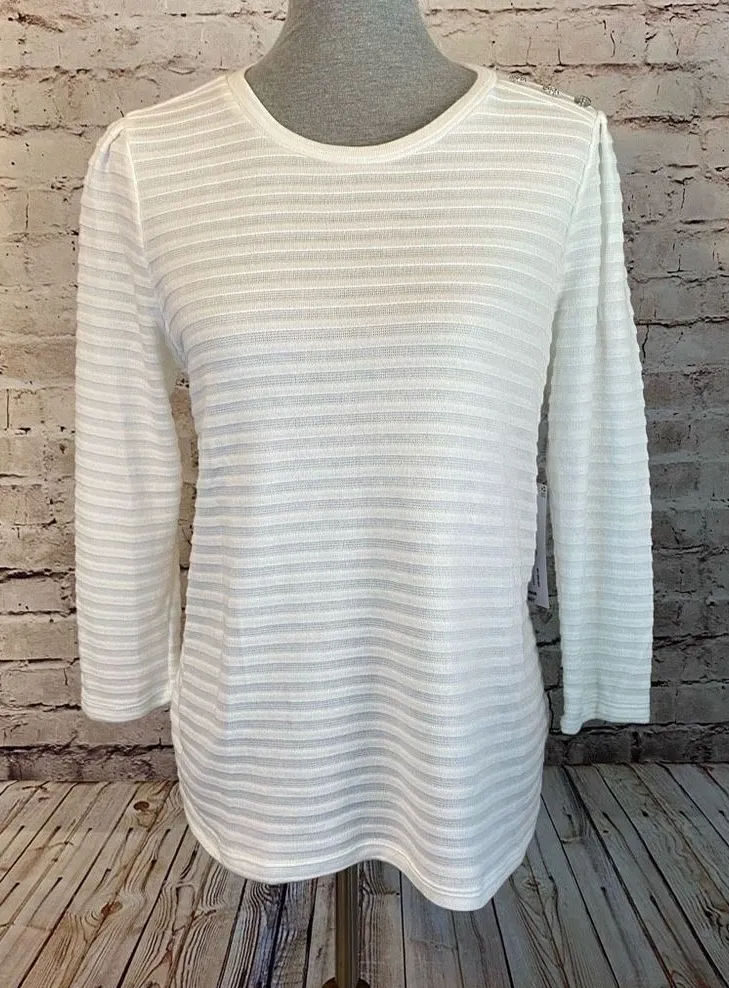 Liz Claiborne Womens Cream Long Sleeve Sweater Striped Button Embellished Medium Brand: Liz Claibor... Show more
