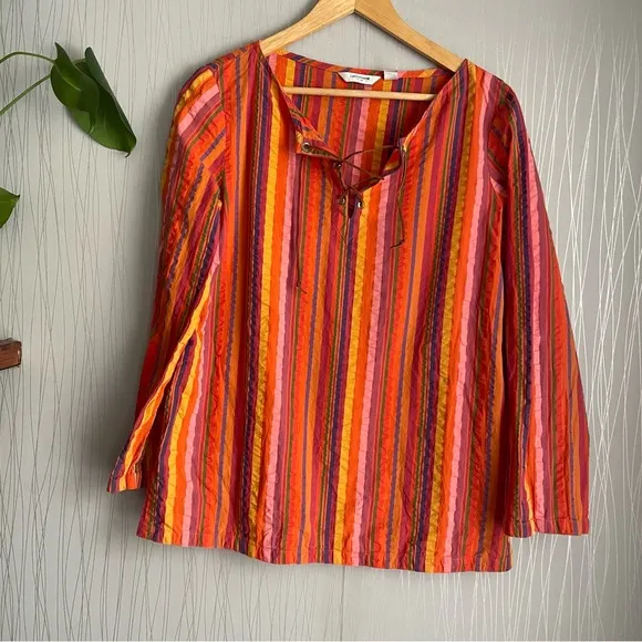 Liz Claiborne Women's Orange and Red Striped Leather Lace Up Blouse Size 14 - $14 - From ThePoshJawn