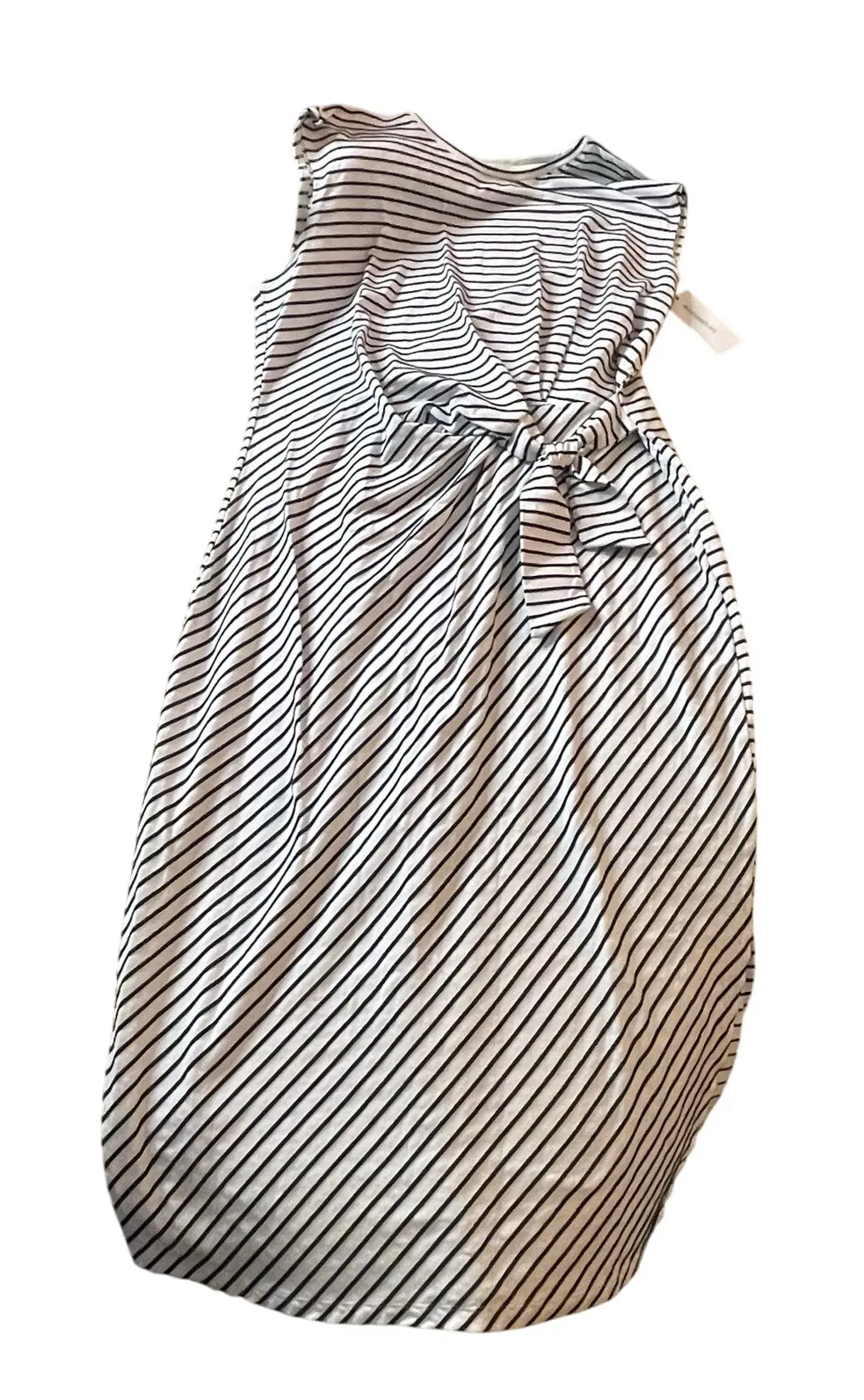 LIZ CLAIBORNE XXL Striped NWT MIDI Dress Knot Front Plus Size White Blue Tank Approximate Measuremen... Show more