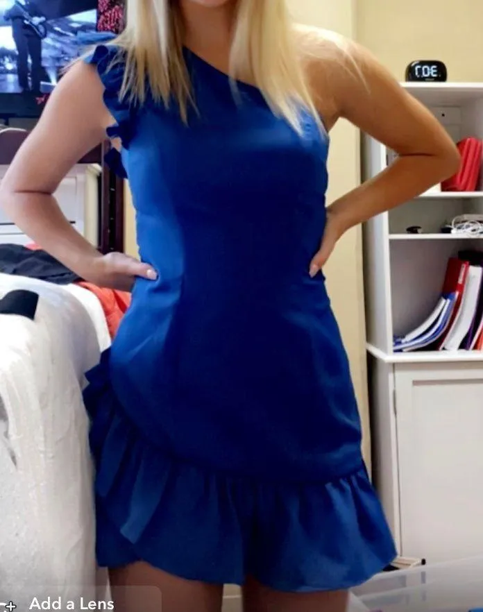 One Shoulder Ruffle Blue Dress Size M - $23 (61% Off Retail) - From Katie