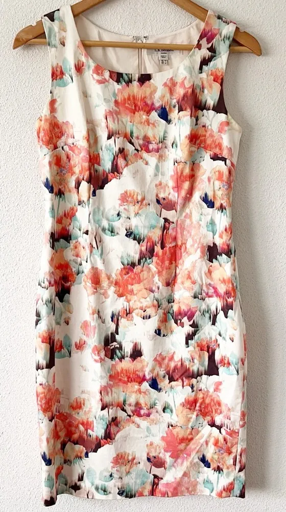 size 6. Sleeveless, lined, scoop neckline, zipper closure no sign of flaws noted. Comes from smoke free home. Measurements Length (shoulder to hem) - 37” Width (armpit to armpit) - 19” Waist across- 17”
