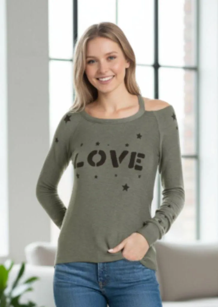 Chaser Love Stars Cozy Knit Vented Pullover Sweatshirt Shirt. Crew Neck. Long Sleeves. Fitted Cuffs.... Show more