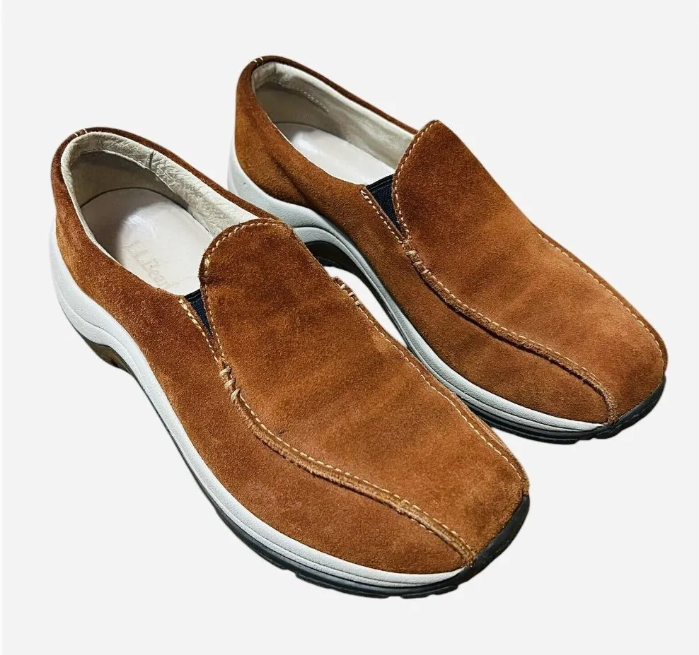 L.L. Bean Brown Suede Slip On Comfort Work Hard Sole Shoes Women Size 10M ***Please be advised, color may appear more vibrant, lighter/darker in pictures due to flash, contrast, lighting or your phone/computer screen set up, etc. I try to described color as best as possible. I do check every item very closely while taking pictures and while packing it for shipping but it is very easy to still miss a stain or small damage. So please, if you receive an item with a defect not mentioned on the description, message me and I will do my best to fix the problem. Thank you! This item is pre-owned. Any questions please don’t hesitate to ask.