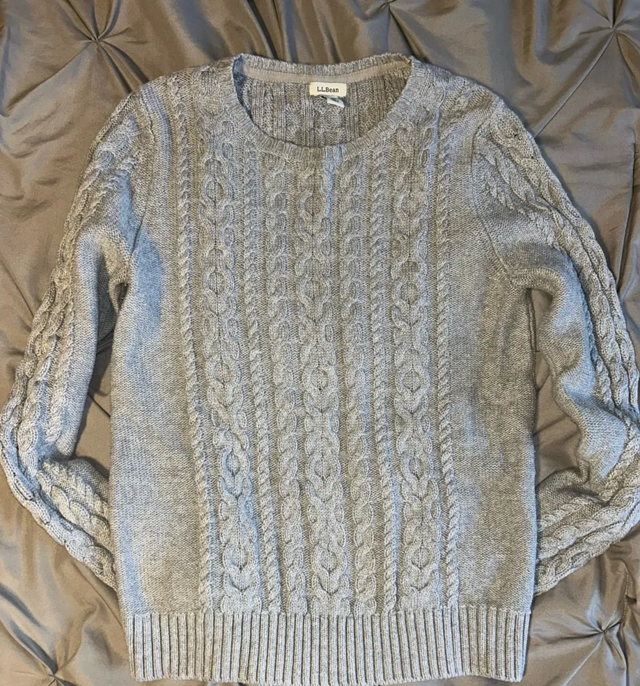 The vintage LL Bean Chunky Cable Knit Cotton Crewneck Fisherman Sweater in Women's XS is a versatile and stylish piece perfect for various occasions such as travel, parties, casual wear, work, or business. Made from heavyweight cotton in a solid gray color, this sweater features a classic crew neck and long sleeves, with a cable-knit design that adds a touch of texture. The fisherman-inspired theme and traditional style make it a timeless addition to your wardrobe, suitable for winter, fall, and spring seasons. Machine washable and featuring a pullover style, this sweater is a practical and fashionable choice for women's clothing. Pit to pit 17 inches Sweater length 20 inches