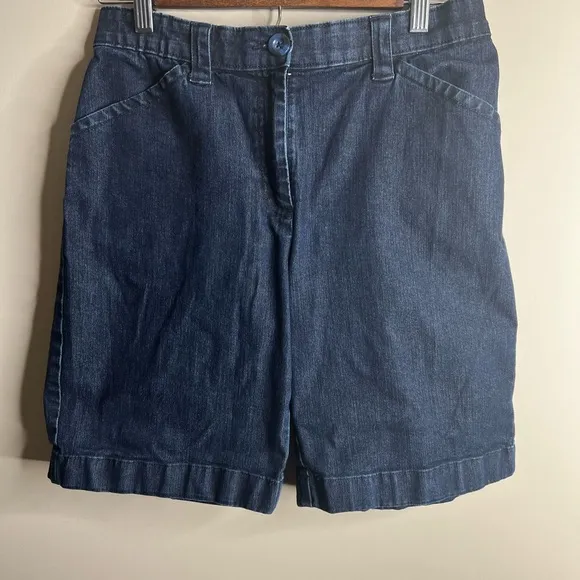 LL bean Classic fit Dark wash denim Bermuda jean shorts Size 8 83% cotton 16% polyester 1% elastane... Show more