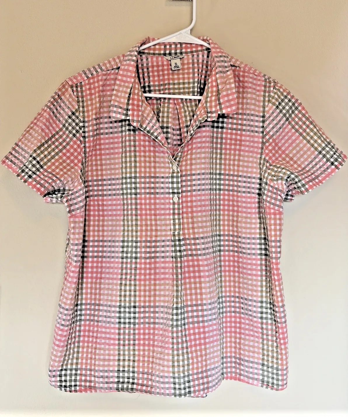 LL Bean Coral Green Seersucker Gingham Popover Blouse Shirt Top Womens XL - $24 - From Hilary