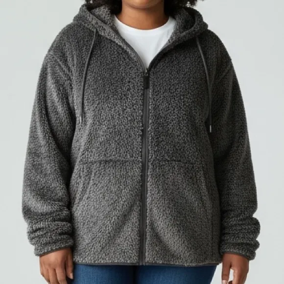 Excellent used condition! Has been worn and washed. No flaws. Measurements when laying flat Pit to pit 25 1/2” Top hem to bottom (measured from center back neck to bottom) 29 1/2” Please note that the trim/binding by the zipper, hood, cuffs and hem is a deep shade of purple - not gray. It looks gray in my far away pictures but you can best see the color on the third picture which shows a closeup of the size tag. We took our softest, bestselling fleece and added a hood and extra length for exceptionally warm, exceptionally cozy comfort and great coverage. Falls at low hip. Slightly Fitted: Softly shapes the body. Elastic binding on hood, cuffs and hem. Two handwarmer pockets. Hooded for extra warmth and weather protection. Droptail hem is slightly longer in back for added coverage and warmth. Style 524595