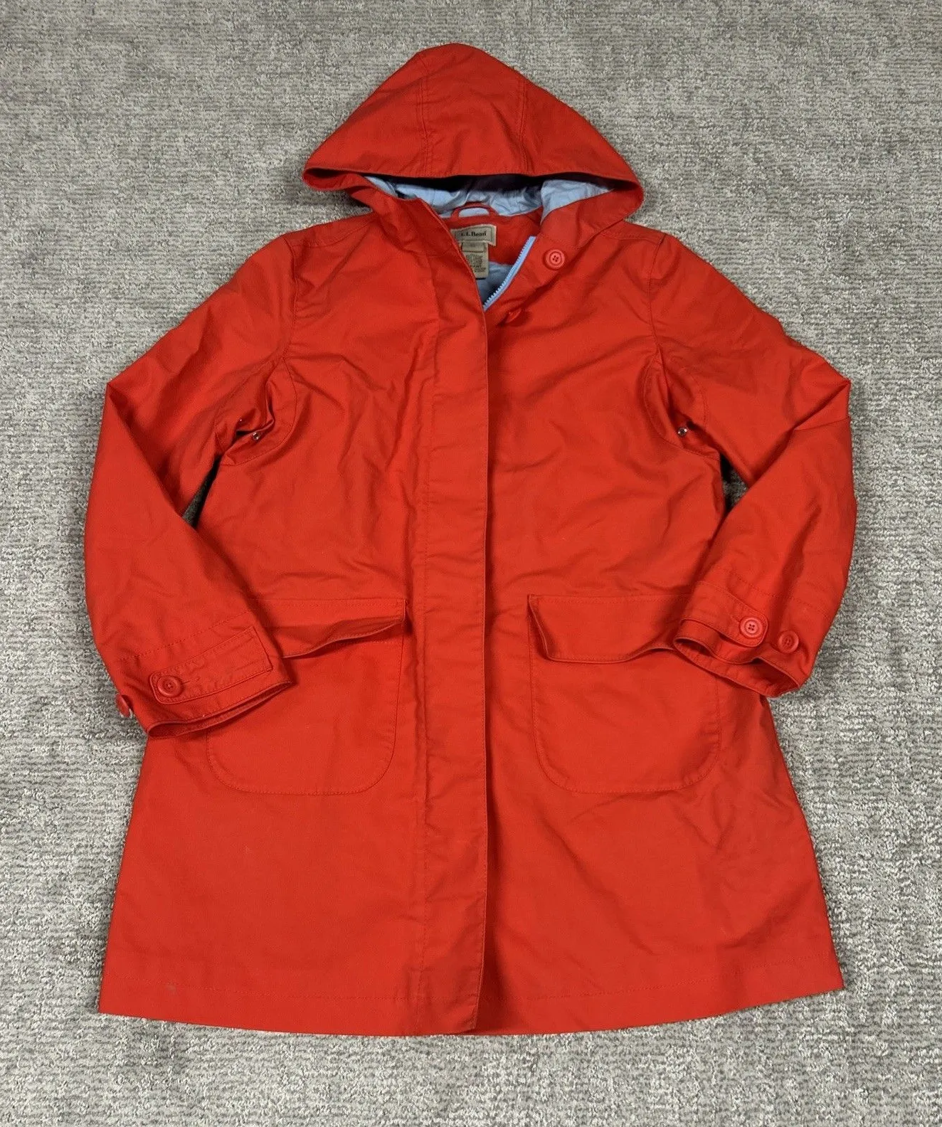 LL Bean Jacket Womens XL Raincoat Jacket Hooded 0 HAW1 Waxed Cotton Orange-ish Red color Lining is... Show more