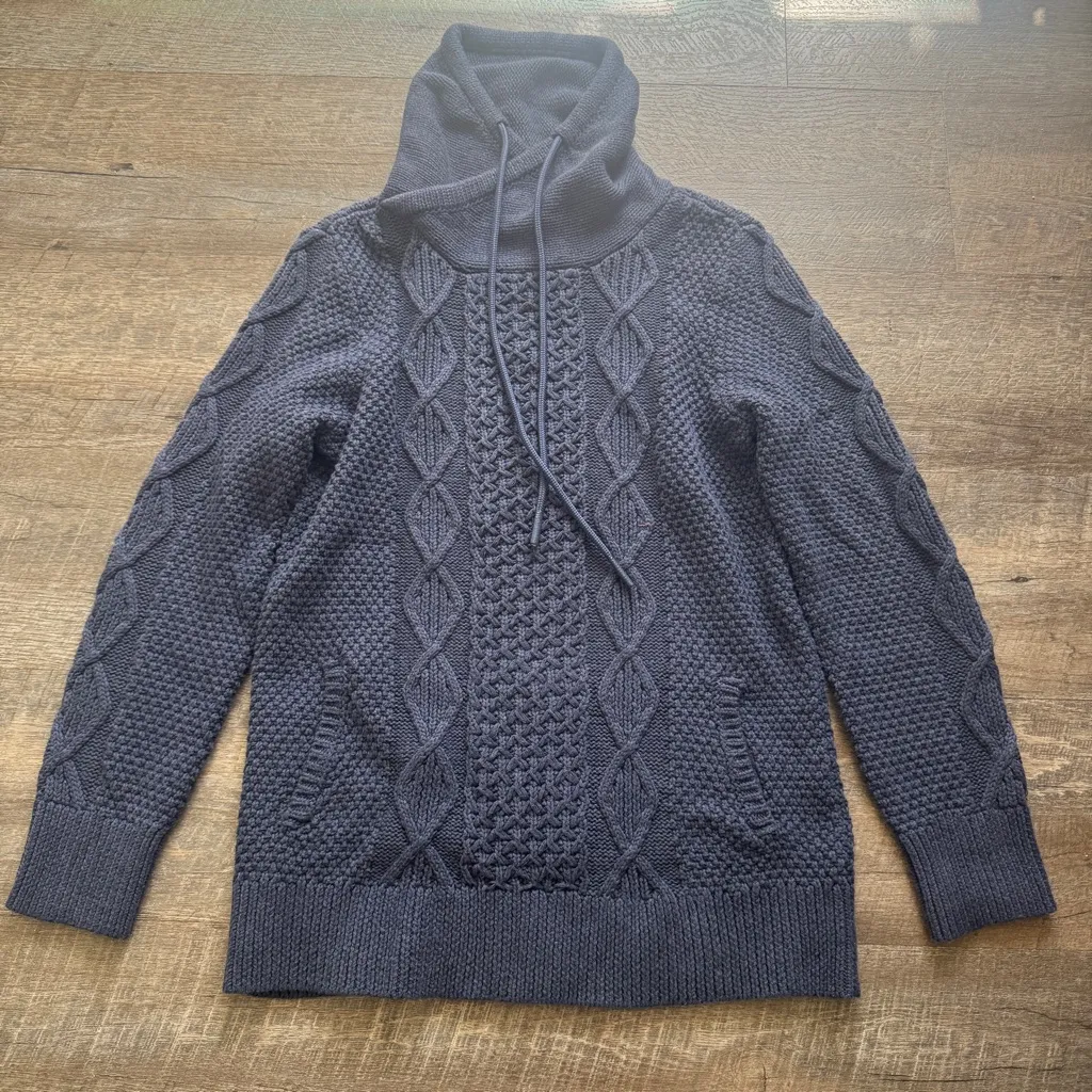 LL Bean Signature Sweater Women L Blue Cotton Funnel Neck Chunky Pocket Tunic Size L - $45 - From Amazin