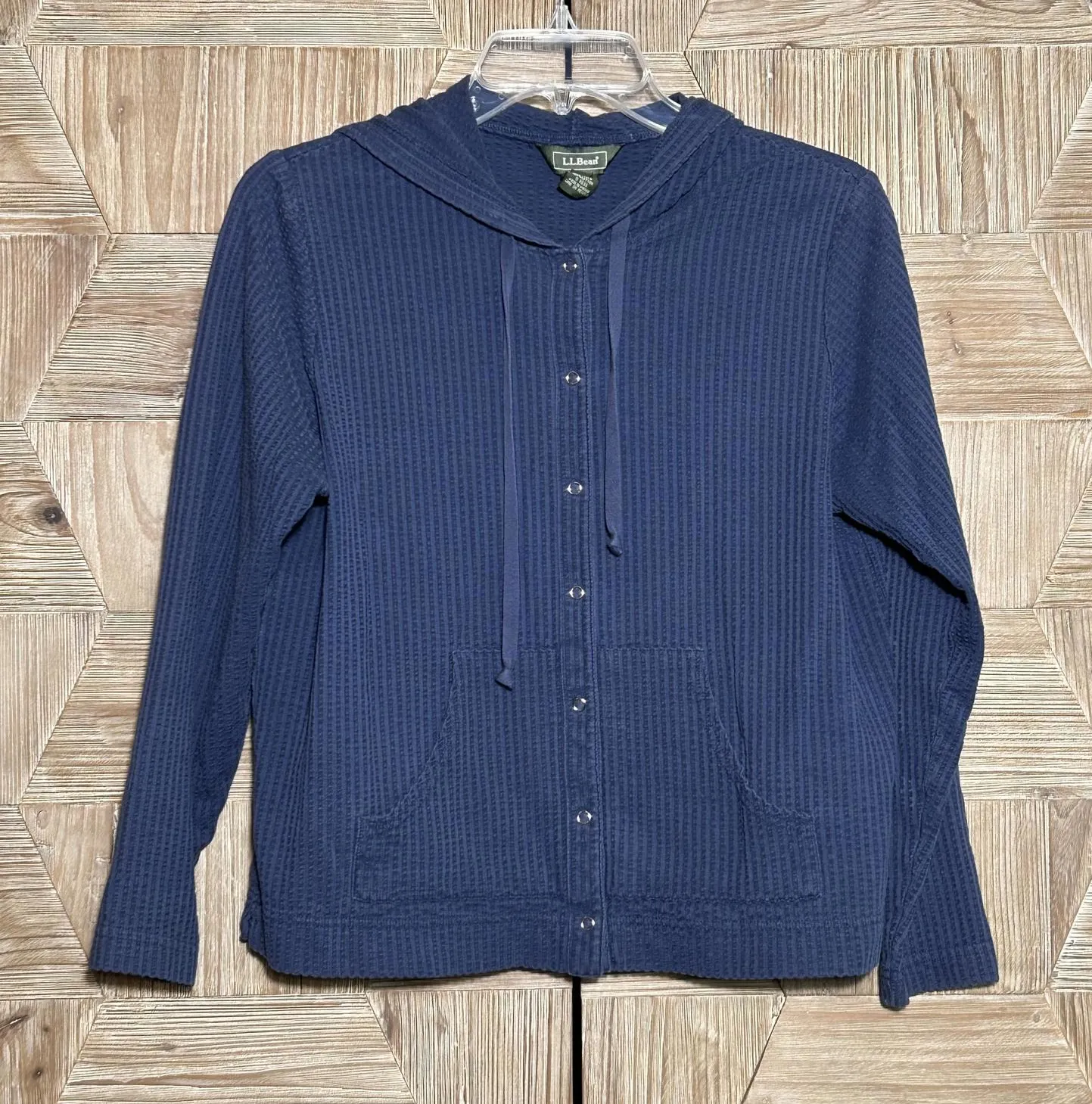 EUC L.L. Bean Navy Blue Waffle Knit Button Up Hoodie Size XS • Textured Waffle Knit Fabric, Snap But... Show more