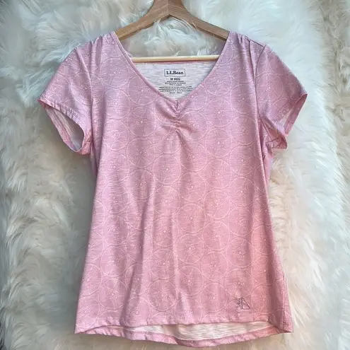 LL Bean Women’s pink/white pattern v neck t-shirt Pink Size M - $13 - From Katrena