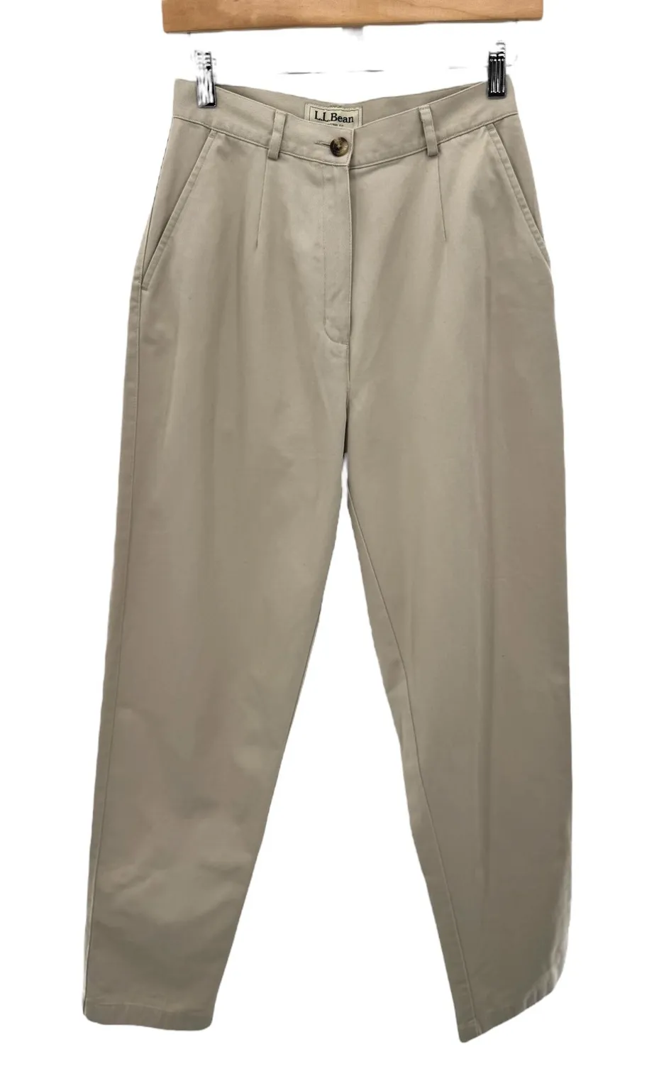 Classic khaki straight leg pants for women. These LL Bean pants offer a timeless style with their original fit and comfortable design. Featuring a button and zip closure, belt loops, and convenient front and back pockets, they are as practical as they are versatile. The neutral khaki color makes them a perfect foundation for numerous outfits. Ideal for a casual day out, a relaxed office environment, or even a weekend brunch. Measurements: • Waist: 26 in • Inseam: 30 in • Rise: 12 in • Leg Opening: 7 in *discoloration on back. Likely will wash out. See photos Style: Khakis Department: Women Material: Cotton Leg Style: Straight Fabric Type: Twill Type: Pants Features: Pockets, Easy Care, Breathable, Stretch Closure: Button, Zip Pattern: Solid Accents: Button Occasion: Casual, Workwear Keywords: LL Bean Pants, Women's Khaki Pants, Straight Leg Trousers, Cotton Pants, Casual Pants, Classic Fit Pants, Work Pants, Everyday Pants, Size 4 Pants, Regular Fit Pants, LL Bean Original Fit, NWT Pants, New with Tags