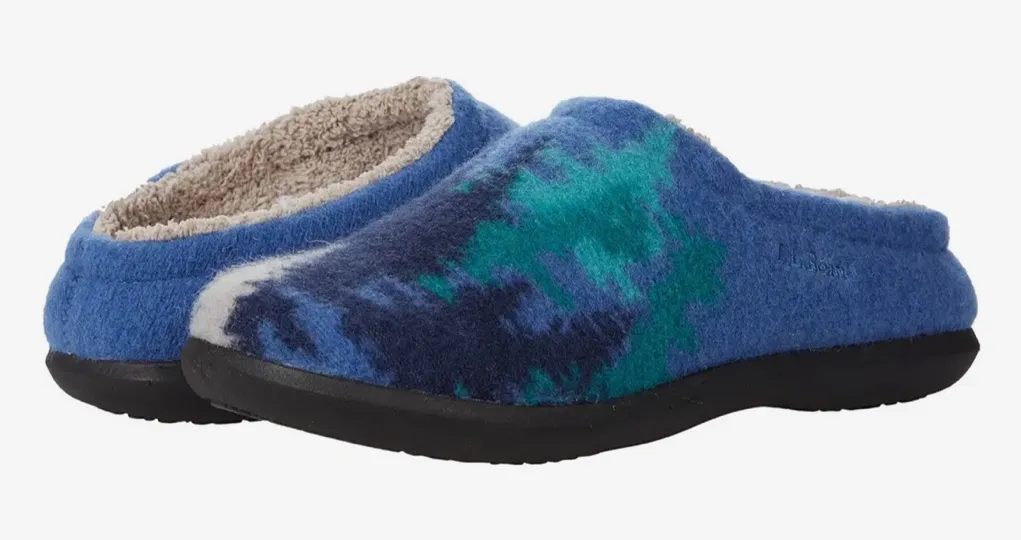 L.L.Bean Daybreak Scuffs Motif Wool Slippers – Blue Ombre Trees – Women’s 8 Wool clog style upper H... Show more