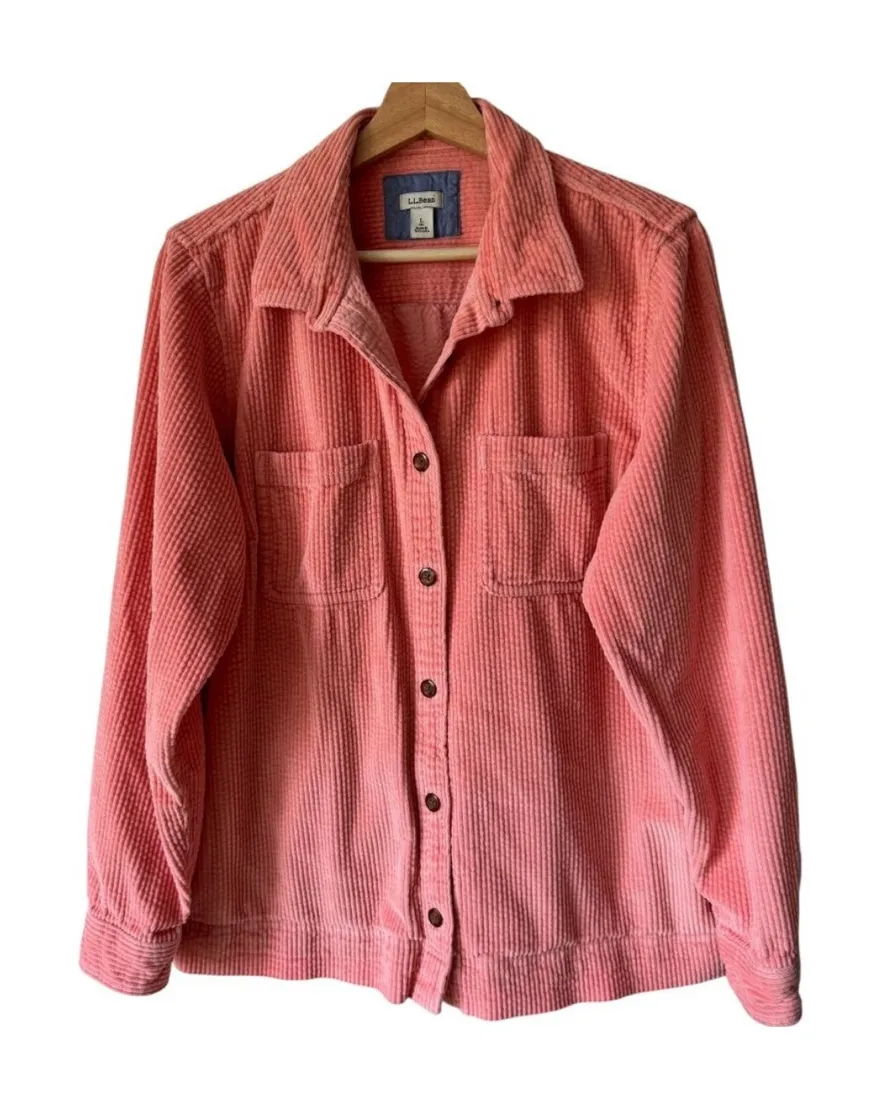 L.L Bean Women’s Comfort Corduroy Relaxed Shirt Coral Button-Up Size | Small Petite 100 Cotton Ex... Show more