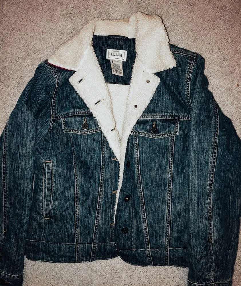 The coolest denim jacket ever. So trendy and great. In good condition one baby hole on the shoulder... Show more
