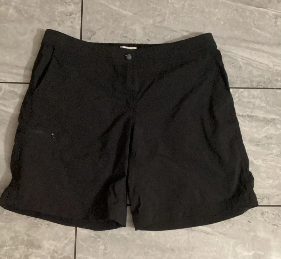 No flaws. Measurements: • Waist flat: 17 in • Inseam: 9 in • Rise: 10 in • Leg Opening: 12 in Style: Cargo Department: Women Fabric Type: Spandex Material: 100% Nylon, Spandex Occasion: Casual, Travel, Activewear Accents: Zipper, Logo Pattern: Solid Features: Pockets, Lightweight, Water Resistant, Quick Dry, Breathable Performance/Activity: Hiking, Water Sports, Gym & Training, Cycling Fit: Regular Keywords: hiking, outdoor, travel, athletic, casual, quick dry, utility, activewear, summertime, adventure, comfortable, nylon blend, zipper pocket
