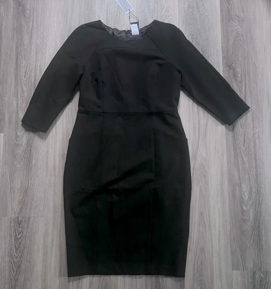 Brand new with tags MSRP $266 3/4 sleeve knee length dress Bust 21” Length 43” Zipper closure Front Set-in Pockets 3/4 Length Raglan Sleeves Front & Back Princess Seams for an Amazing Fit Main Fabric Content: Viscose, Nylon, Spandex Same to stock photo except the one for sale is the BLACK dress. See pictures for description and materials tags. 20BOX48