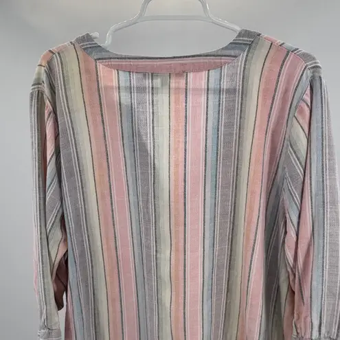 Excellent condition Lightweight blouse with multicolor stripes. Soft texture and comfortable fit. Perfect for everyday style. Linen. Vacation. Casual. Resort. Cruise. Beach. Pastel. Colorful.