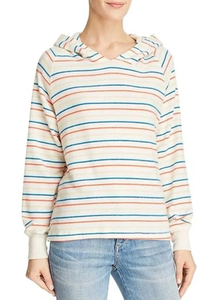 LNA Brushed Carly Striped Hoodie Sweater Bring west coast life to your wardrobe with this LNA Brushed Carly Hoodie. Brushed hacci pullover has a relaxed fit with allover striped design. Attached hood. Long raglan sleeves. Straight hemline with split side seams. 75% Tencel 21% rayon 4% spandex Armpit to armpit is approx 19" Length is approx 22"