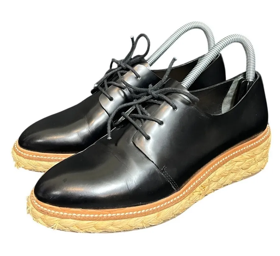Loeffler Randall Black Oxford Raffia Callie Wedge Shoes‎ Leather Womens Size 8 - $71 - From Sophie