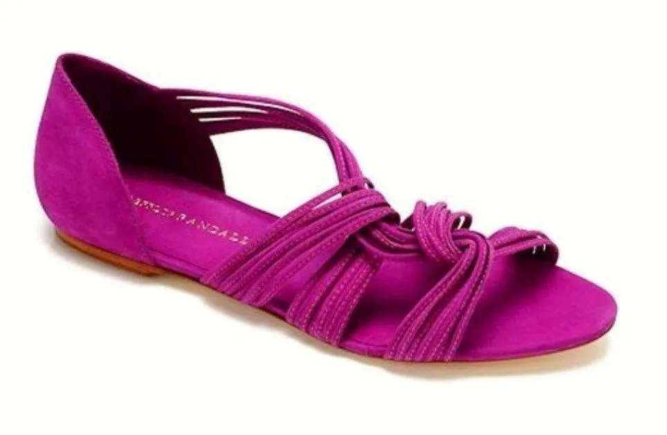 NO OFFERS. PRICE IS FIRM AND NON-NEGOTIABLE. NO TRADES OR HOLDS. Beautiful Loeffler Randall "Flippa Mignon" sandals in a pretty purple magenta, size 6. Genuine leather. Braided suede. Worn to a few weddings (see photos for wear), but still look amazing on. These are gorgeous, and look dressy without the discomfort of heels! Heel stickers were added to the inside of the back to prevent scratching. Last photo is stock.