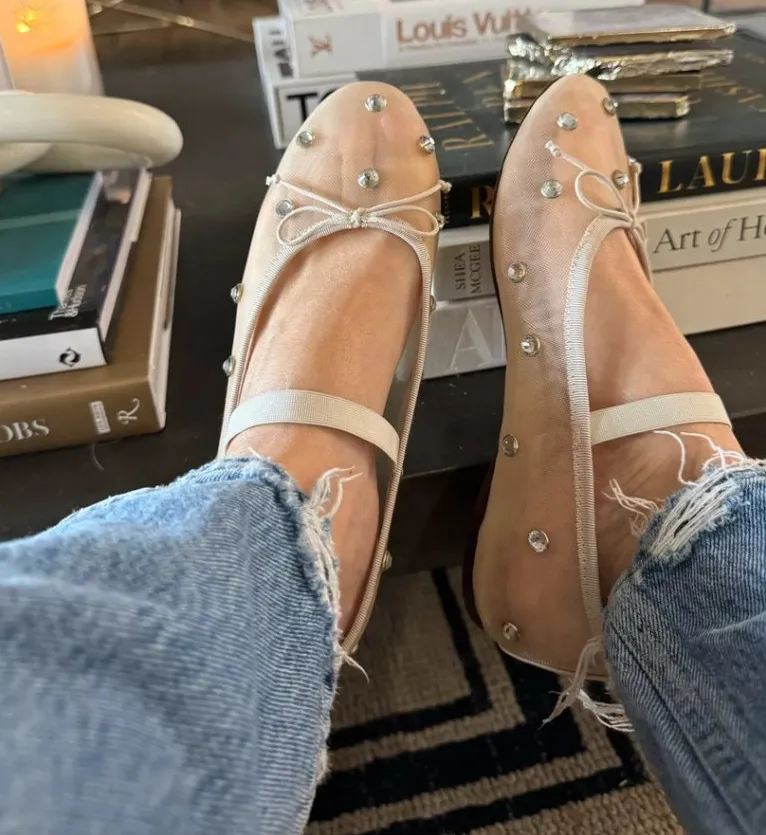 LOEFFLER RANDALL Leonie Crystal Mesh Ballet Flats in Caramel Size US 10 Silver - $178 - From Dina