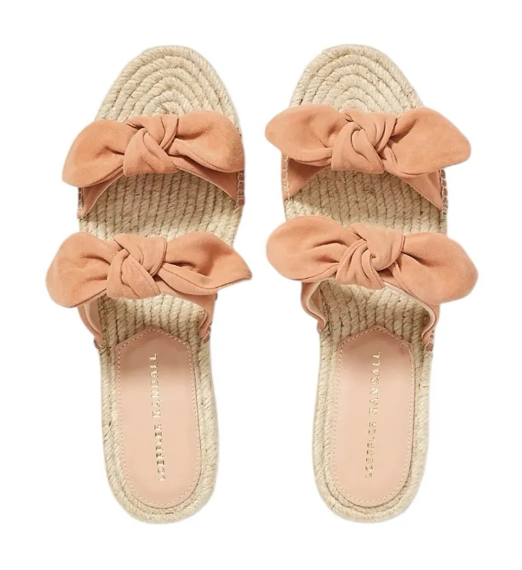 Gorgeous slip-on espadrille slides featuring LR’s signature double-knot bow straps in a soft peach s... Show more